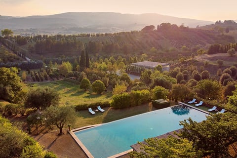 Formerly a noble residence, Il Patriarca fuses classic Tuscan architecture with elegant interiors marked by antique furnishings, exposed wooden beams, and stunning panoramic views. Whether you find yourself sipping fine wine by the pool, dining on locally sourced cuisine, or reveling in the idyllic tranquility of the landscape, this villa offers an unforgettable Italian countryside escape.