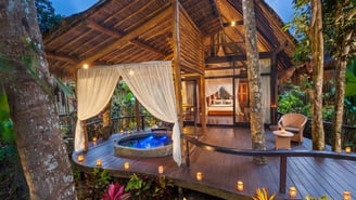 Showcase experience: Book a couple’s water purification ceremony or indulge in a flower bath for two, with candlelight and jungle sounds.