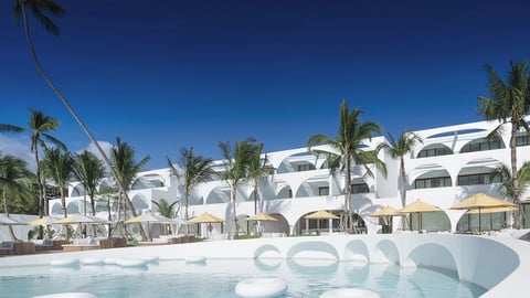 This design-forward beachside getaway in Koh Samui marries sleek design with soft tropicality. Villas boast private pools, minimalist interiors and open-air bathrooms. Sleep to the sound of the waves, and spend your day under palm trees, ending with a couple’s massage right by sea.